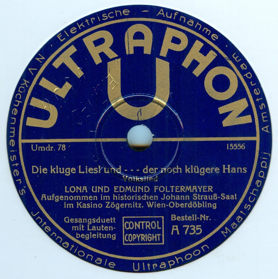 Eine der frühesten Gitarre- bzw. „Lauten“aufnahmen aus Österreich, mit den Wiener Lautensängern Lona und Edmund Foltermayer (Archiv Ben Poelman, NL)
